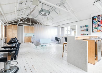 SALT Salon is a contemporary hairdressing salon with a private roof terrace space located in Stamford Works, a former office to a 19th Century paper mill in Dalston, London. We provide the highest level of hair cutting and hair colouring services via our stylists from the world of fashion in a laid back, friendly and inclusive environment. We offer longer than average appointment times for a more tailored and experiential service, clients can enjoy our long concrete bar. We are a proud Bumble & Bumble stockist. All our appointments are gender-neutral.
